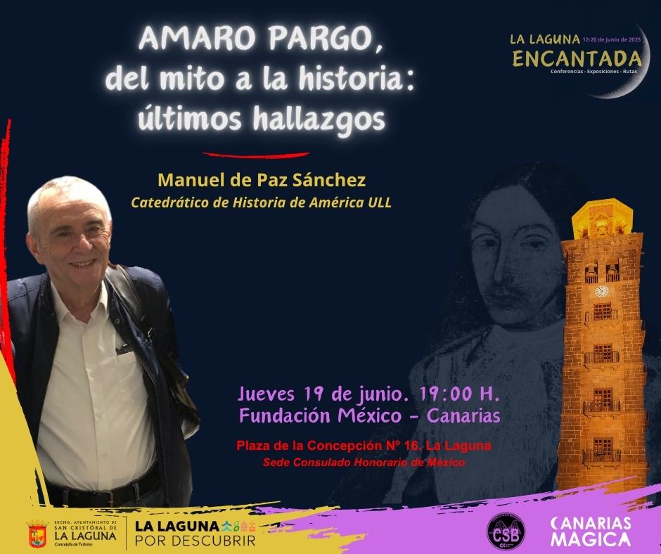 A pesar de la treintena de libros que ya acumulan de Paz y Pulido, los hallazgos alrededor de Amaro Pargo continúan desarrollándose. De los últimos, inéditos, dará cuenta el profesor Manuel de Paz este jueves, a las 19:00 H., en la charla que impartirá en la sede de la Fundación México-Canarias, en el marco de las jornadas La Laguna Encantada que promueve la Concejalía de Turismo y Comercio del Ayuntamiento de La Laguna.