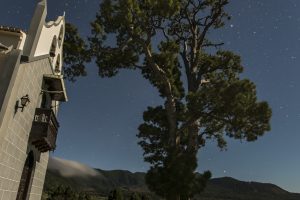 Nos trasladamos ahora a otros dos templos con una orientación desviada de la norma habitual. El primero es el templo de San Blas (Villa de Mazo), una de las primeras iglesias construida en la isla. Llama la atención que tenga una disposición N-S, concretamente los pies a 162-163º de acimut ¿Sería un descuido, una necesidad de adaptación al terreno, de cimentación o arquitectónica? Su posición no puede ser arbitraria; entonces ¿a qué se debe? Debía tener un inteligente significado cósmico puesto que era la forma de vincular el templo con un astro o con los ciclos temporales que se establecía el día de su fundación como es el caso de la onomástica del santo de su devoción. La onomástica de San Blas se celebra el 3 de febrero, un día después de la Candelaria. De manera interesada se dispone hacia el Morro Mojino, lugar preciso por donde asomaba, sobre la antigua degollada, la reverenciada estrella Canopo en su orto helíaco -al oscurecer- a principios de febrero.