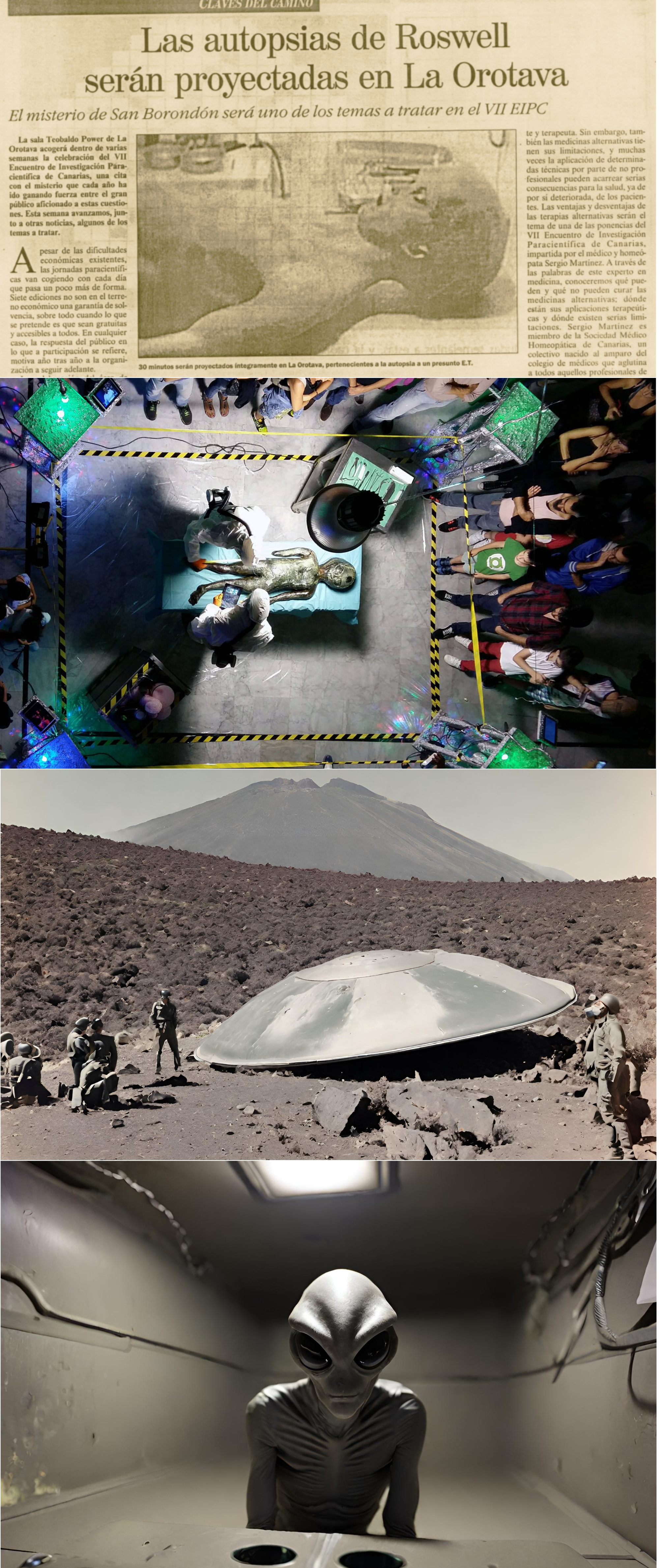 Canarias, visionado exclusivo de la autopsia. La Orotava fue el primer lugar de España en el que se proyectó de forma íntegra la película de las filmaciones. Fue el 25 de noviembre de 1995 y Javier Sierra la acababa de conseguir. Le habíamos invitado a nuestro congreso de misterio, en su séptima edición. Más de 500 personas reunidas en el Teobaldo Power se convirtieron en protagonistas de aquella exclusiva.
