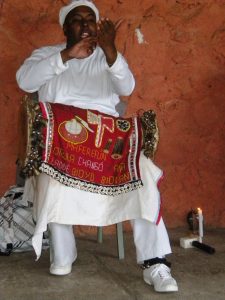 Si presto atención hoy en el monte, quizás escuche el retumbar de unos tambores entre el sonido del viento y los pájaros. Unos tambores como los que suenan en los garajes de tantas casas celebrando ¿El día de Elegguá, Changó, Babalú Ayé? y el lento y constante canto de “…Elegguá a la roye, aquí loyu, bara baraba. Echu boru boru Echu bí.. Echú bochiche, Echú bara Baraqueiqueño. Elegguá ala roye aquilo yo aguru tento onu. Apagura acamasese erelutese aba mula omo. Bata ocolofofo ocoloñiñi tonicanofo. Morogun oya a la yiki…”[1]
