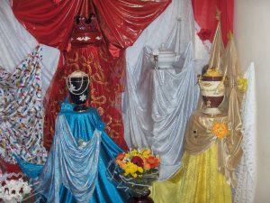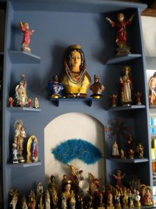 …Toca… parece decir la mano del cartel, pero yo no toco, no las ofrendas, ni las telas multicolores de los altares, ni los troncos donde habitan deidades ya no tan desconocidas y que al no encontrar ceibas han elegido nuevos troncos, al no encontrar jutías se satisfacen con ratones y al no tener ríos y lagos recogen sus ofrendas en costas y correrías de barranco. Desde sus inicios, y no solo al asentarse en América, sino desde los distintos procesos tenidos lugar en la propia África, los Orishas, deidades de la Regla Osha, una de las religiones de origen africano que emigraron en las bodegas de la esclavitud se han visto forzados al sincretismo y la adaptación de símbolos, objetos sagrados y rituales con el fin de hacer viable una practica religiosa en sociedades y ecologías que complicaban muchas de sus tradiciones y ceremonias, hasta tener que camuflarse entre santos y vírgenes penitentes. Un sincretismo que los siglos hizo propio y que enriqueció altares, ceremonias y mitos, abriendo camino a otras múltiples formas espirituales que desde entonces no han dejado de innovar.