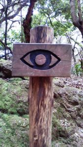 …Mira…exhorta el cartel de uno de los senderos de los sentidos en Anaga, con un ojo dibujado que me recuerda los amuletos contra el mal de ojo tan común en puertas y ventanas. Y miro, porque a eso he venido hoy al monte. Estoy cazando ofrendas. Una bandeja de merengues blancos con banderines llama mi atención ¡Los Orishas están en casa! Con una familiaridad que disgusta a unos, sorprende a muchos y consuela a otros han cruzado el Atlántico y han venido a Canarias para quedarse, acomodándose en tiendas esotéricas, programas de televisión, senderos del monte, anuncios de la prensa local, estanterías de Ikea, cobertizos y cruces de caminos. Pero al llegar al archipiélago, lejos de las puestas en escena para turistas y congresistas, de los interminables toques de tambor y de los museos/casas de santo cada vez más populares de la Habana Vieja, los Orishas de mi infancia han cambiado un poco. En su travesía por el Atlántico han perdido color, cambiado los gustos y se han hecho más tolerantes y discretos. Comparten altar con nuevas deidades y ya no se incomodan si les dejas al cuidado de otros, mientras continúas tu búsqueda espiritual entre la quiromancia, el tarot, la numerología y las lecturas de biorritmos.