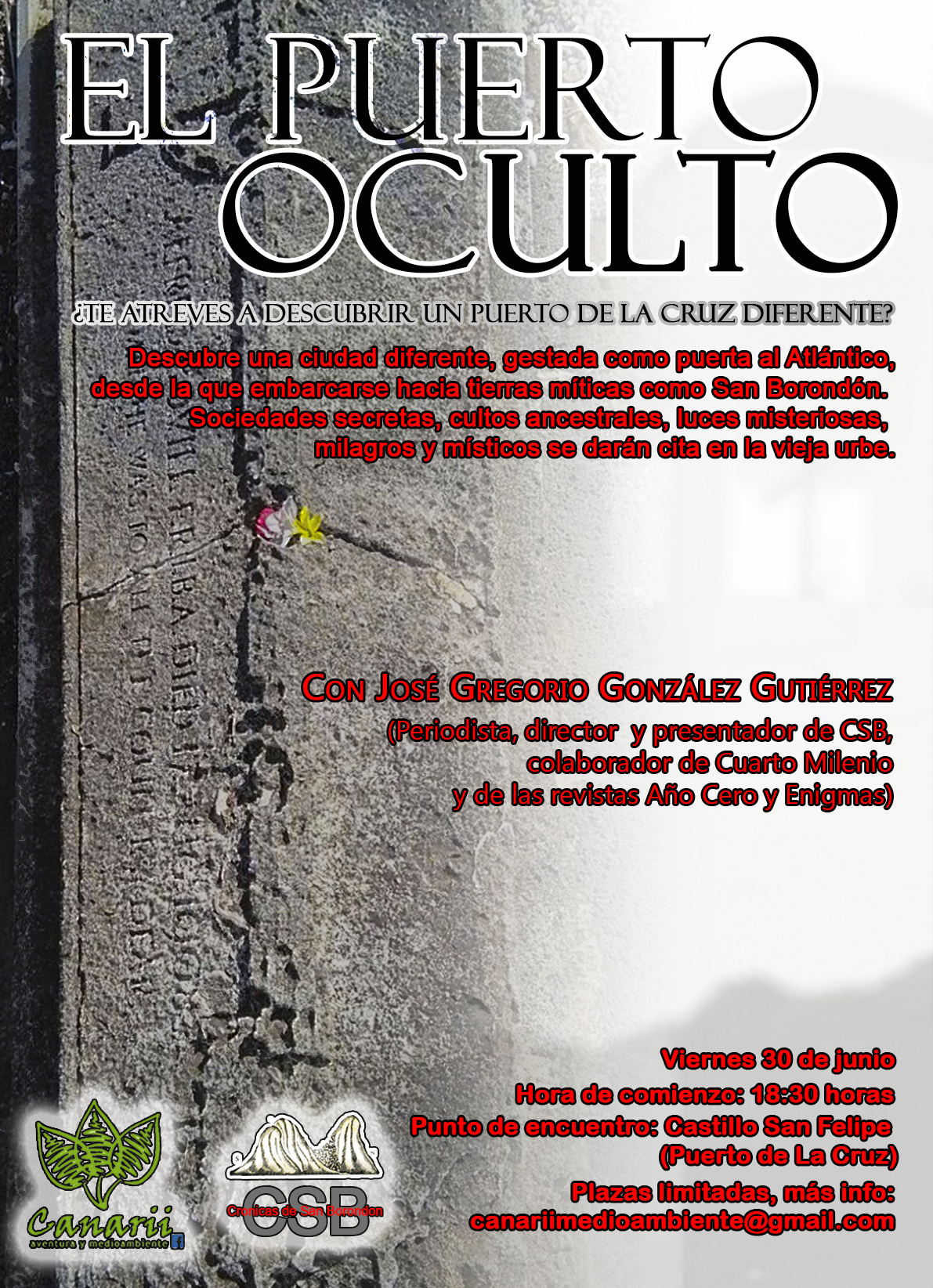 El Puerto Oculto, un paseo por los misterios y leyendas de la ciudad turística…tomando contacto con sus vestigios guanches, sus tradiciones, su imaginario mágico y simbólico, su romance y anecdotario con la masonería, su conexión con los prodigioso…No te quedes con las ganas…