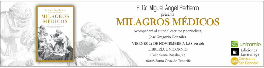 PERTIERRA HABLARÁ EN TENERIFE EL 24 DE NOVIEMBRE DE “MILAGROS MÉDICOS”
