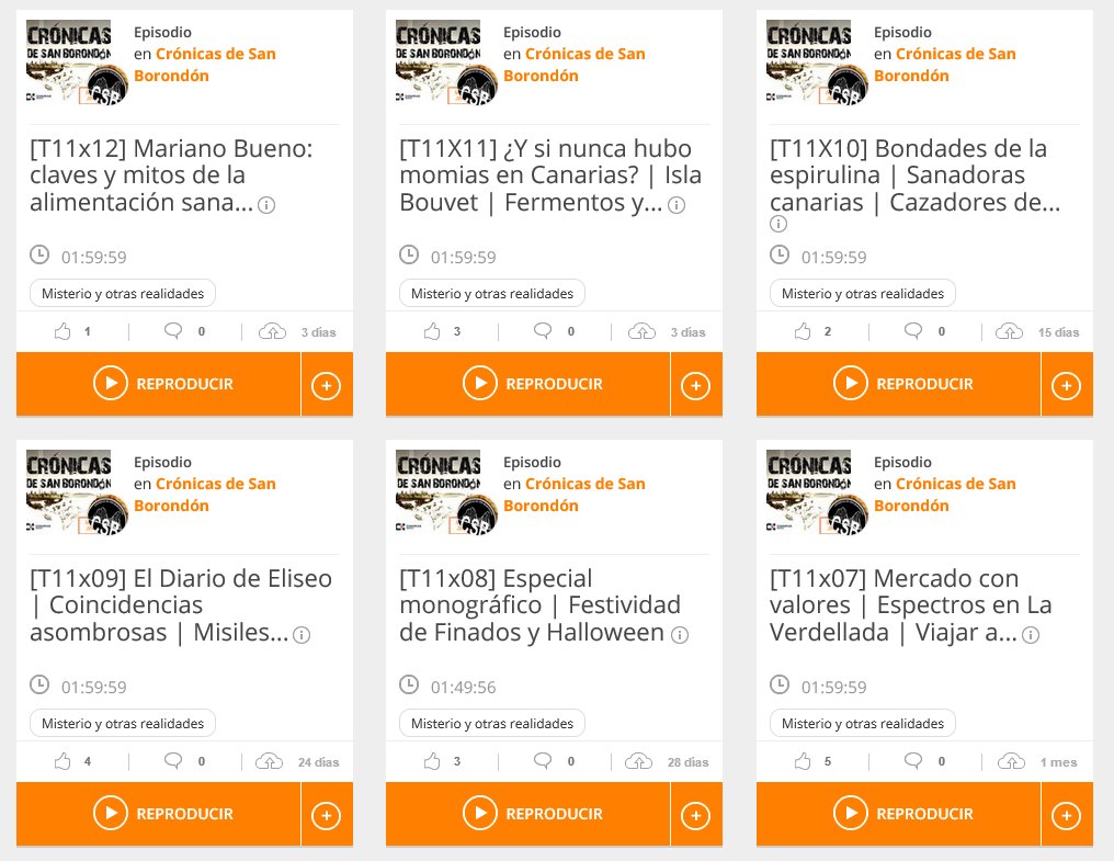 Además de nuestro clásico repositorio en Ivoox, que puedes acceder desde aquí: https://www.ivoox.com/podcast-cronicas-san-borondon_sq_f1156639_1.html