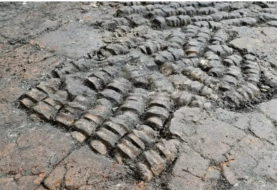 Está elaborado con huesos de animales y el extraño pavimento quedó al descubierto durante las obras de reforma de un edificio. Entre los azulejos antiguos se localizó zona rellena con huesos de animales, concretamente metacarpianos y metatarsianos que pertenecen al ganado. Fueron cortados meticulosamente exactamente a la misma altura, colocados en un patrón con la parte aserrada, bien la superior o la parte inferior, mirando hacia arriba.